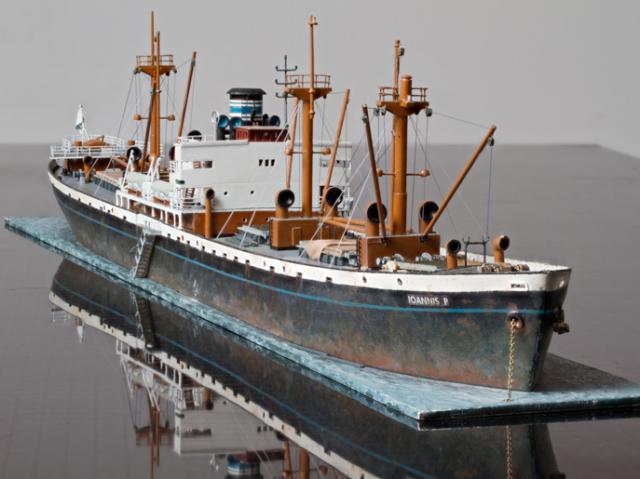 Foto: model van een Liberty-schip, vervaardigd door Jo-Pieter Priester (1928-2006).